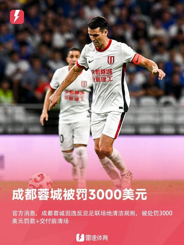 蓉城第一次參加亞冠精英聯(lián)賽,就遭遇罰款處罰。